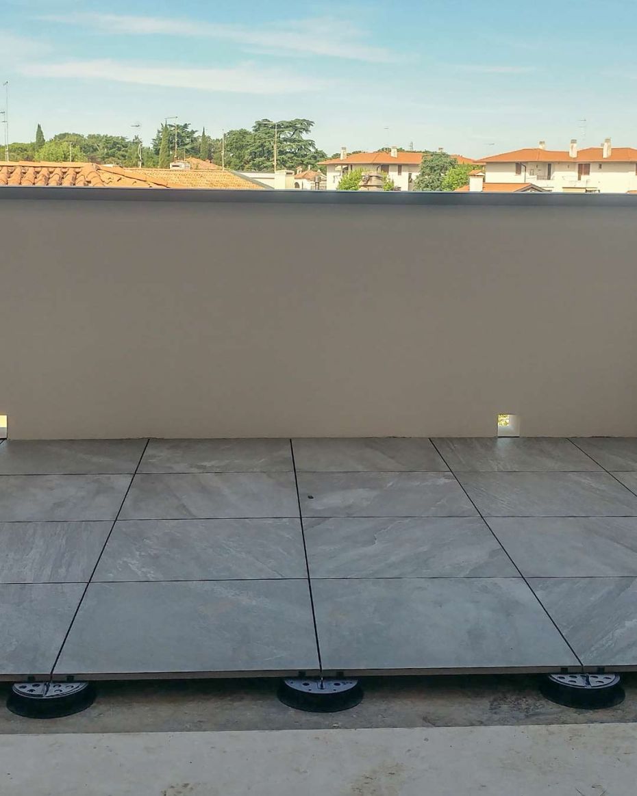 Un pavimento galleggiante esterno o interno è una realizzazione effettuata con piastrelle che non richiedono l’impiego di collanti o cementi per il fissaggio. Grazie ai supporti BUZON si crea un’intercapedine di aerazione sottostante, ove viene posta una guaina impermeabilizzante, per evitare la penetrazione dell’acqua nel massetto.